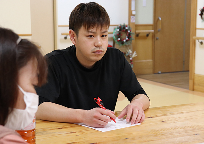 こもれびでは専属の指導担当がついてくれると説明を受けていたので、介護の経験がない自分でも安心できましたし、なにより職員の皆さんが気さくに話しかけてくれて、すぐに打ち解けることができました。静岡は、気候が良く、富士山が見れて、食べ物も美味しく、人が穏やかで温かいです。移住したことに満足してますし、毎日が楽しいです。
