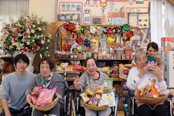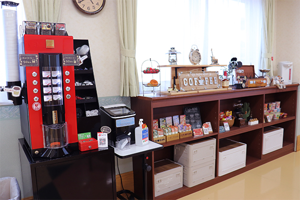 お菓子はもちろん、カップラーメンやパン、ジュースやアイスなど豊富な品揃え。ご利用者もスタッフも、いつでも自由に買い物ができます。